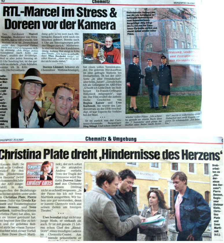 TV-Auftritte von Doreen, Reportagen, Komparsen-Taetigkeiten |